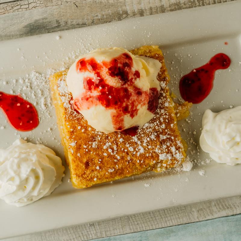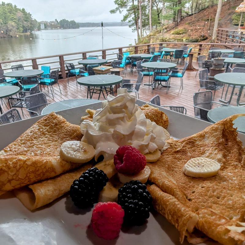 3 home made crepes, served with maple syrup and whipped cream. Add bananas, strawberries or apples $2