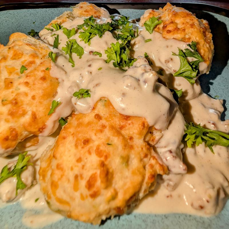 Made from scratch cheddar Bay biscuits, and sausage gravy
