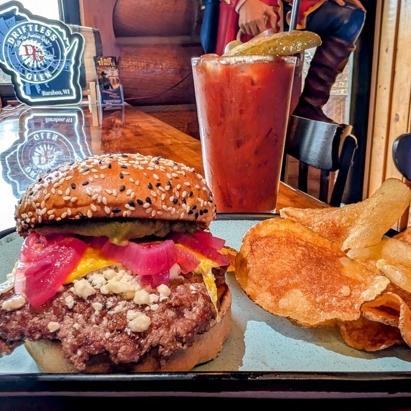 Cheddar, bacon, garlic cream spread, fried pickles, and honey mustard.